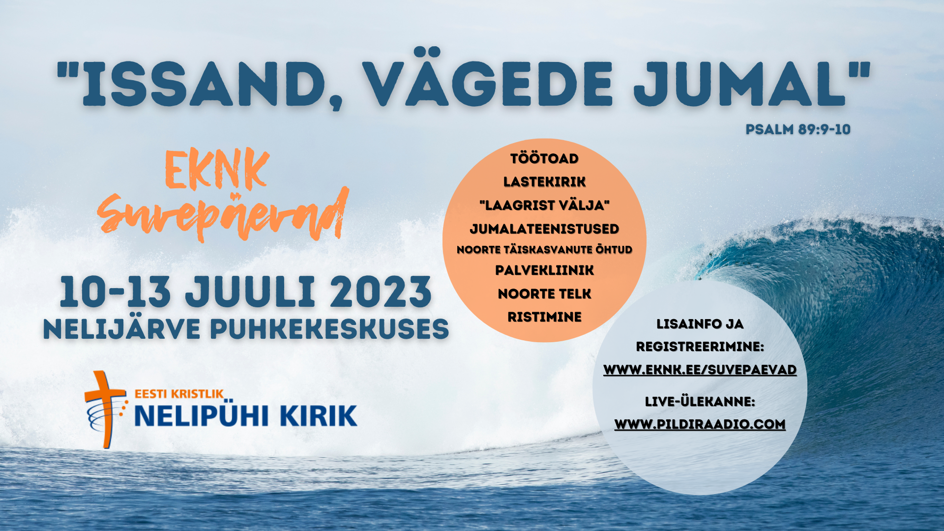 Jätkame häid traditsioone nagu Palvekliinik, aktsioon Laagrist välja ja koguduste vaheline võrkpallivõistlus. Suvepäevi saab lõpetama ristimine.