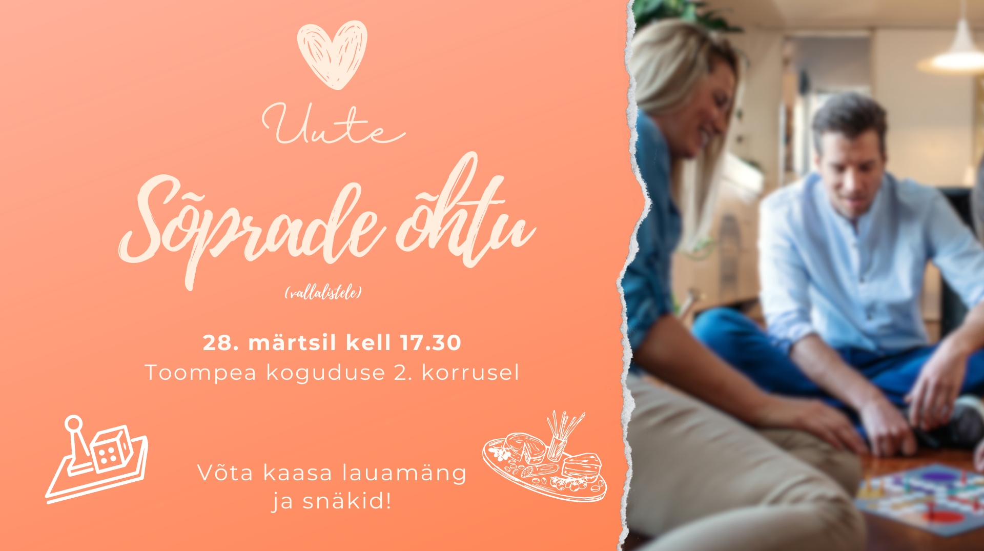 Kuna viimased sõprade õhtud on olnud nii toredad ja erilised, siis tahame selle traditsiooniga jätkata ja üle nädala korraldada kõigile vallalistele ühe meeldejääva lauamängu õhtu!